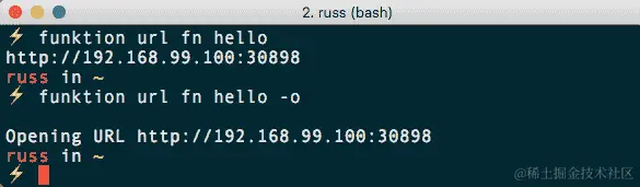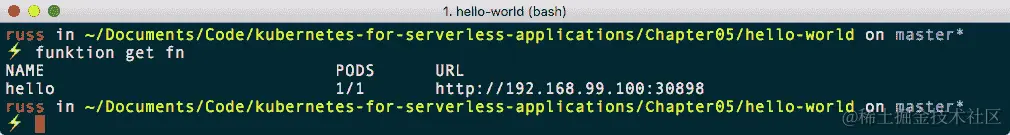 这证明了 Funktion 命令行客户端可以连接到您新安装的 Funktion 部署并与其交互。