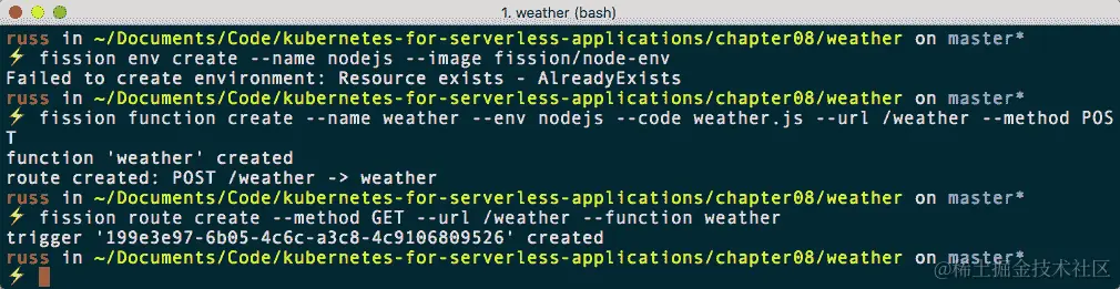 例如,我们安装的 Fission 版本 0.4.0 是因为在写作时,最新版本的 Kubernetes 1.8 删除了ThirdPartyResources功能,并用CustomResourceDefinitions替换,这意味着旧版本的 Fission 将无法在当前版本的 Kubernetes 上运行。