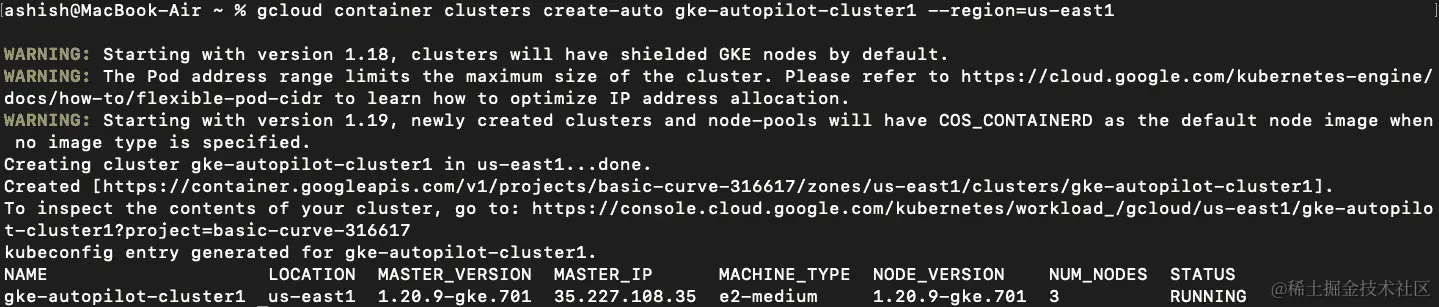kubectl config current-context命令进行验证。如果未设置,则使用gcloud container clusters get-credentials gke-autopilot-cluster1 --region us-east1命令进行设置,这将在kubeconfig文件中添加条目。 -