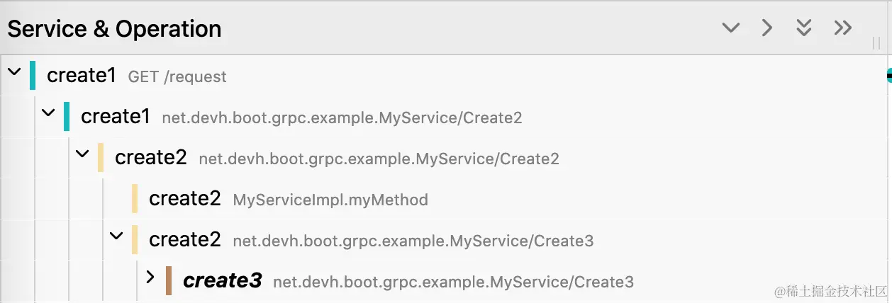 create1 中会提供一个 request 接口,在这里面调用 create2 的 create2 接口,create2 的接口里接着调用 create3 的 create3 接口。