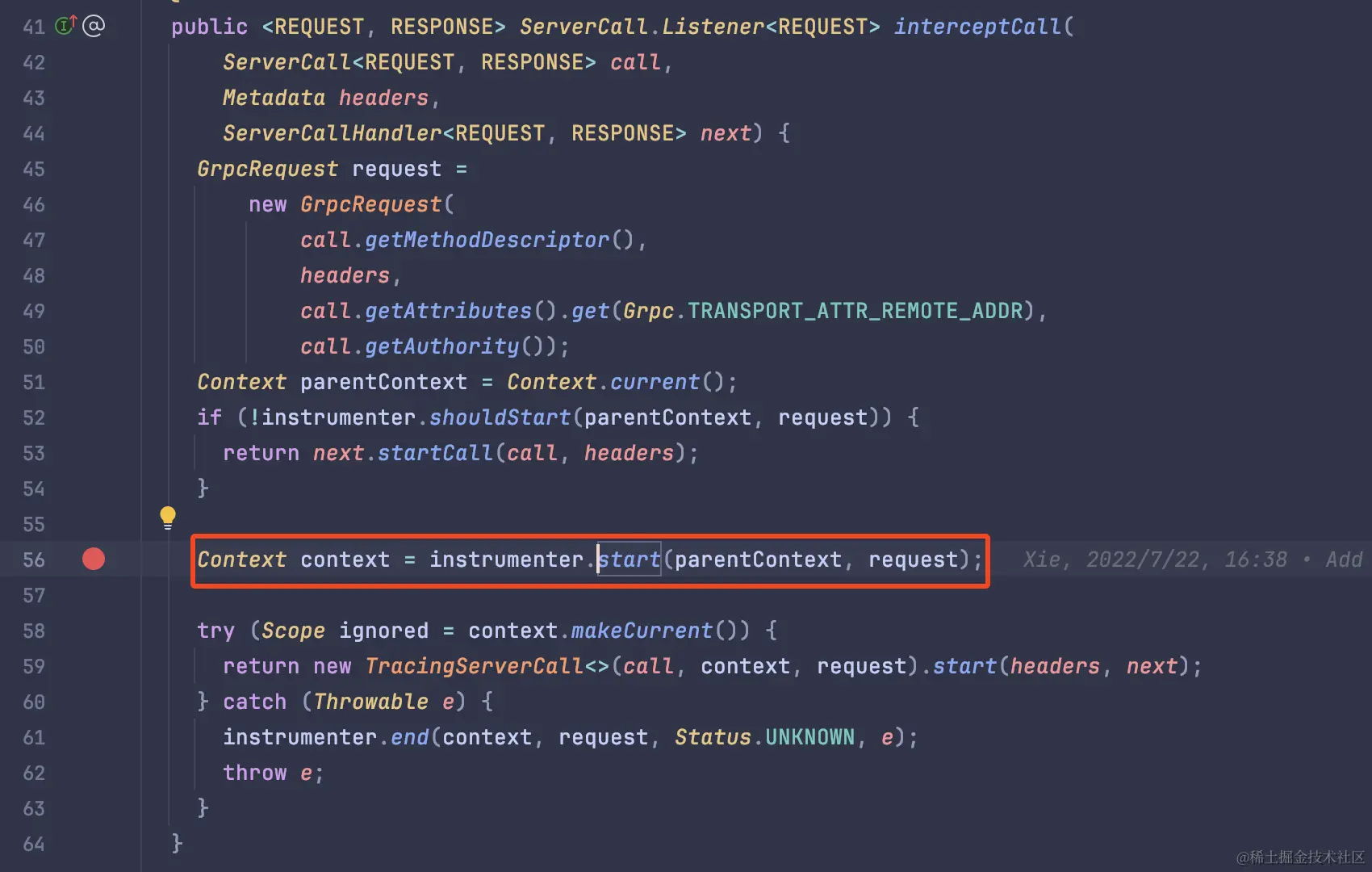比如这是在 grpc 的拦截器中调用。