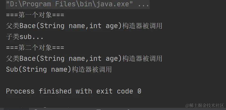 System.out.println("父类Bace(String name,int age)构造器被调用");//2