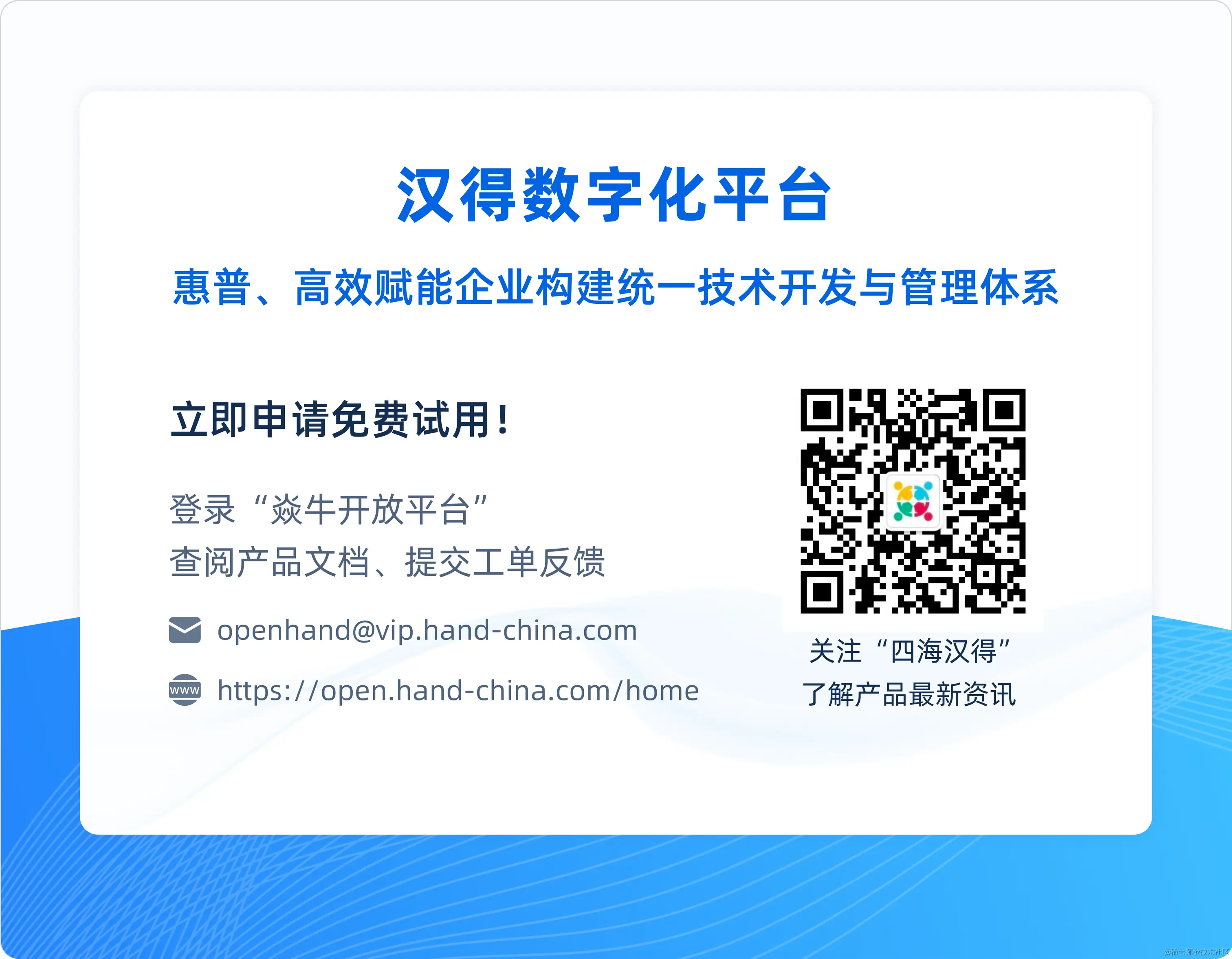 1. 若您想体验试用 AIGC 产品,请登录开放平台open.hand-china.com/,在应用中心选择 灵猿-大圣AIGC平台 ****进行试用。