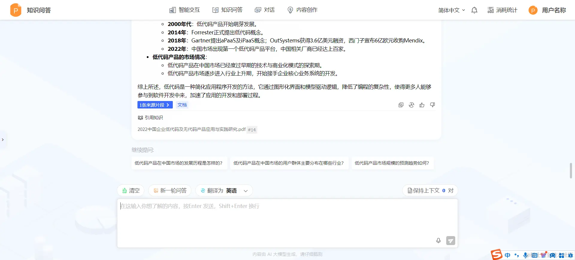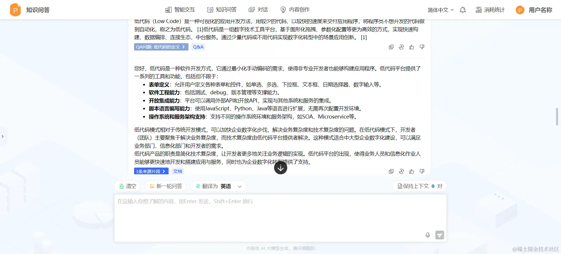 - 多语言回答能力: 根据当前使用的语言,平台能自动匹配并返回相应语言的回答,例如,用户若以英文提问,平台将智能识别并调取中文文档中的相关信息,以英文形式提供准确回答。