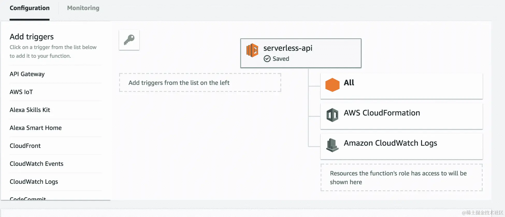 现在,让我们深入了解该定义的每个部分,以更好地理解无服务器计算的范式。我们将从函数即服务这个术语开始。这意味着每个无服务器模型都有一个在云上执行的函数。这些函数只是一些代码块,根据与函数关联的触发器执行。这是 AWS Lambda 环境中触发器的完整列表: