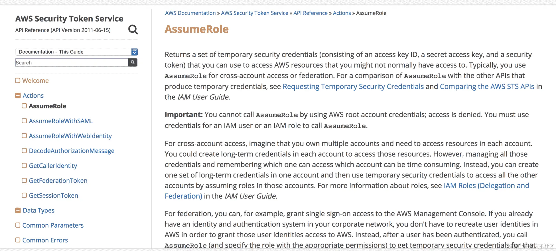 您可以在以下页面找到其文档:docs.aws.amazon.com/STS/latest/APIReference/API_AssumeRole.html