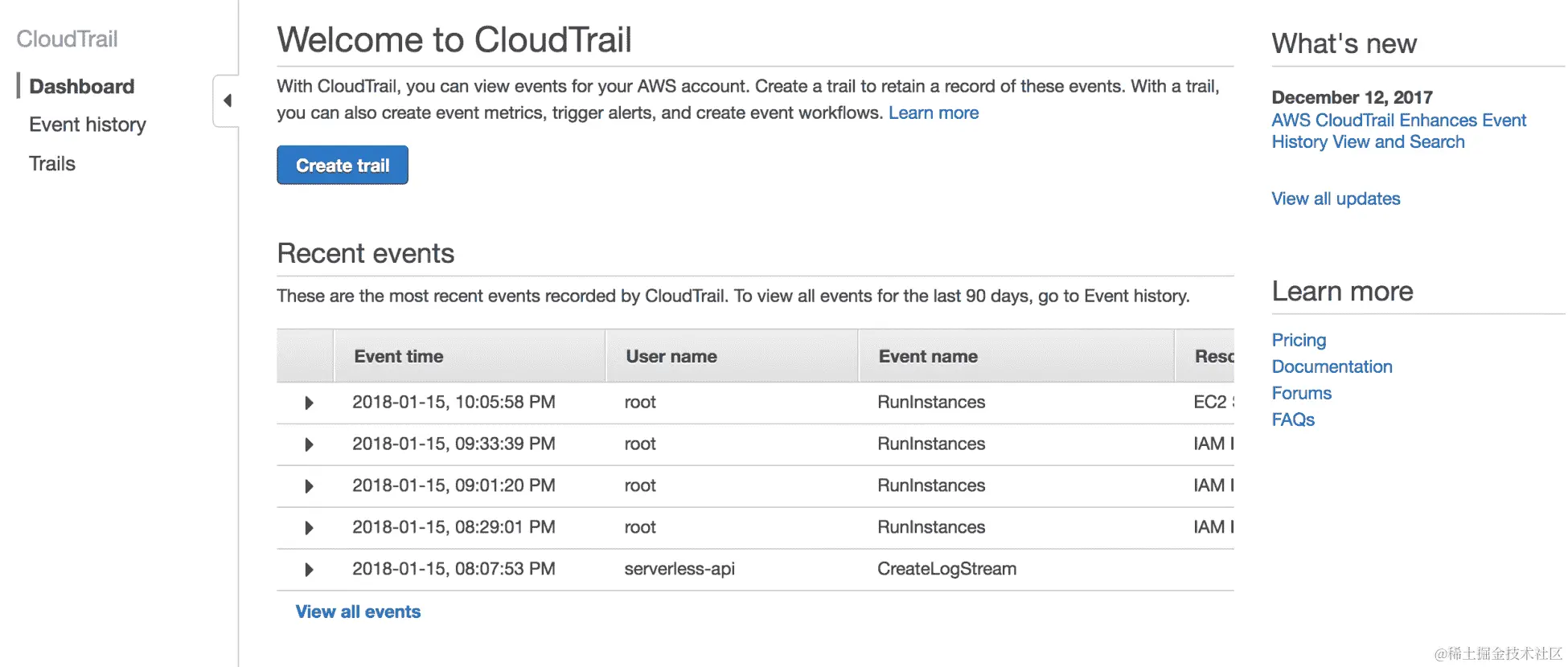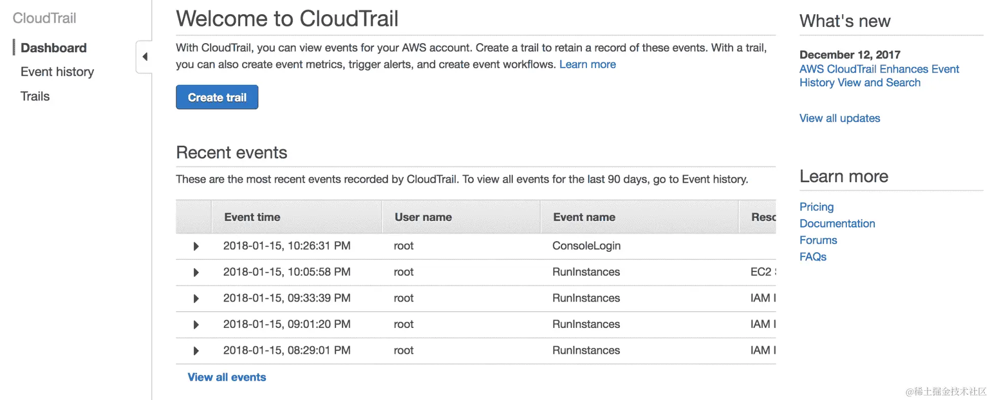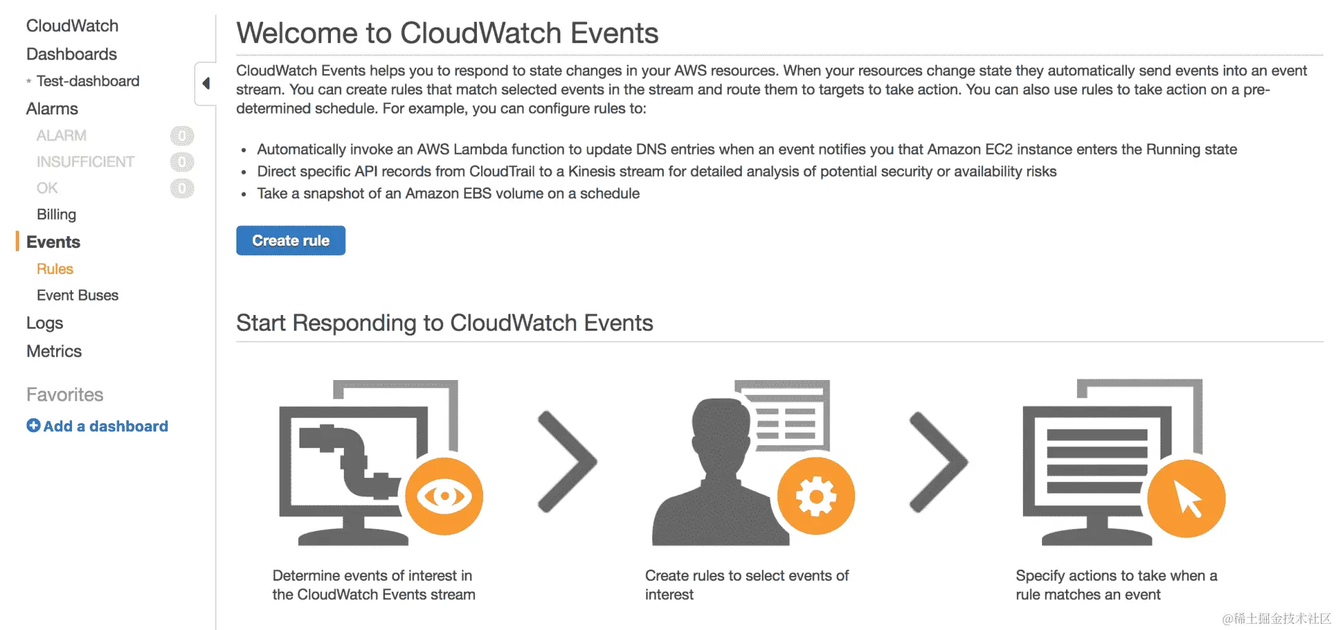 - AWS Config 提供了一个非常有用的界面,用于监控多种安全威胁,并帮助有效地避免或捕捉它们。AWS Config 的仪表板如下所示: