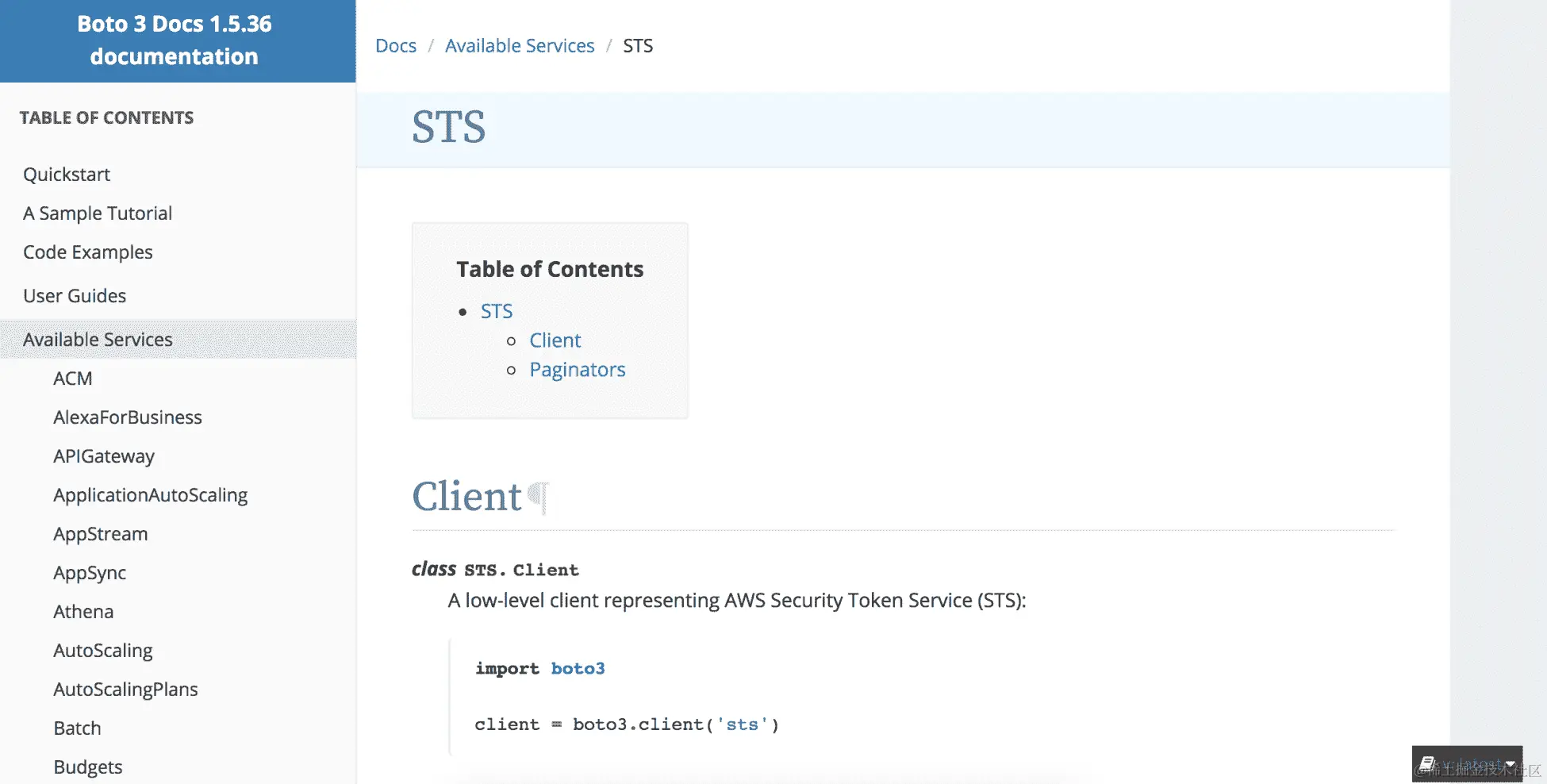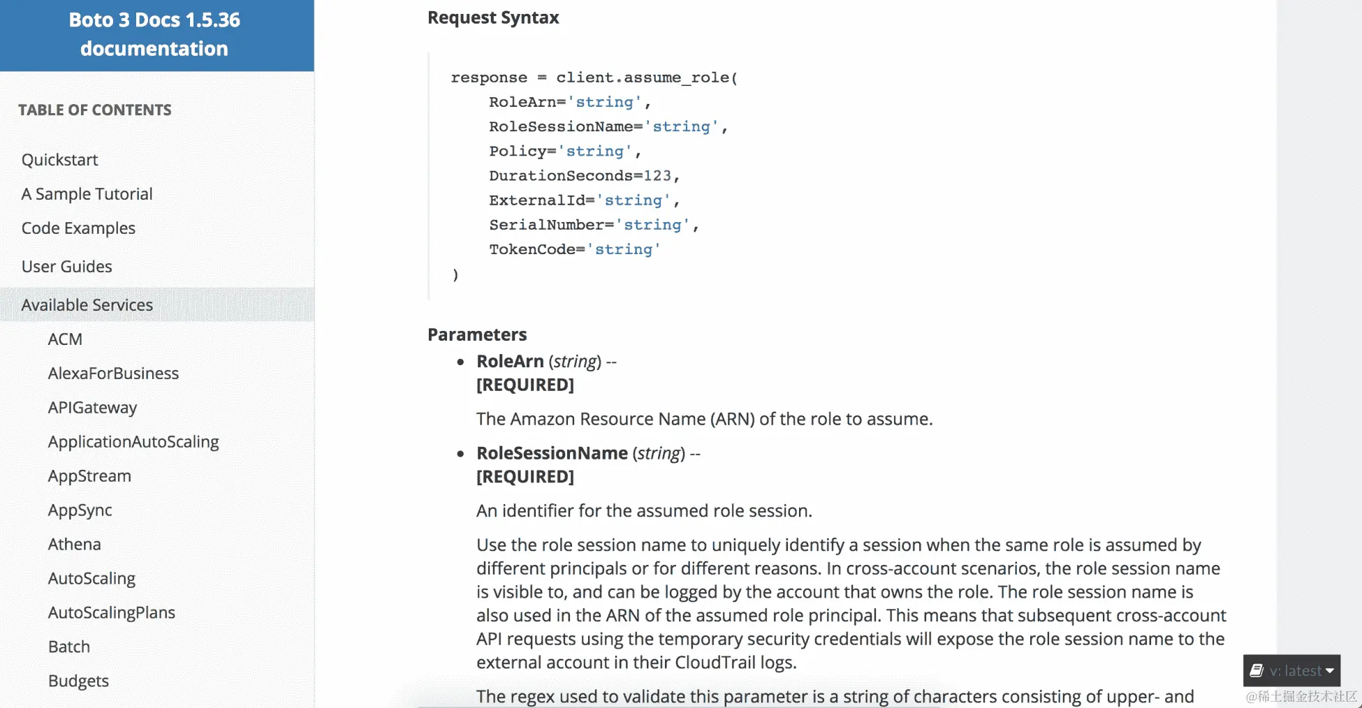 此文档可以在此处找到:boto3.readthedocs.io/en/latest/reference/services/sts.html。
