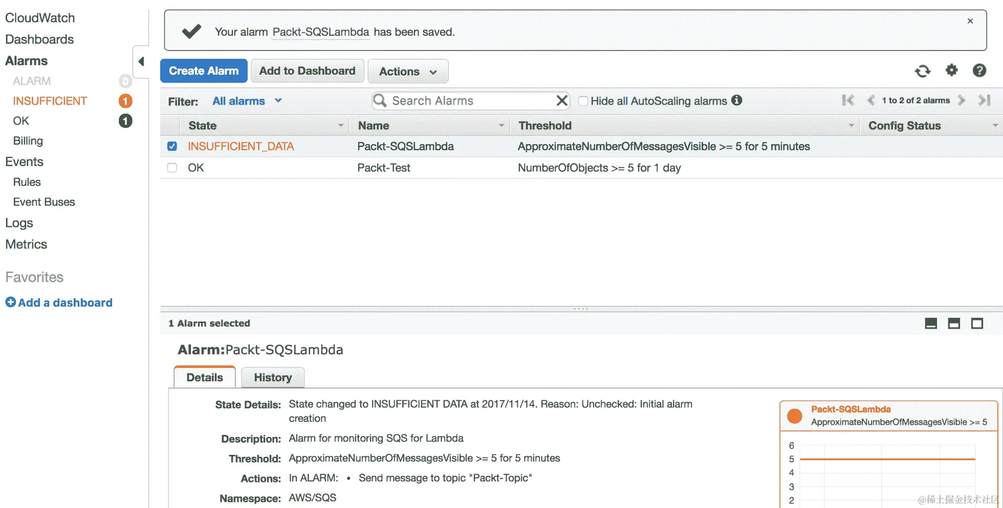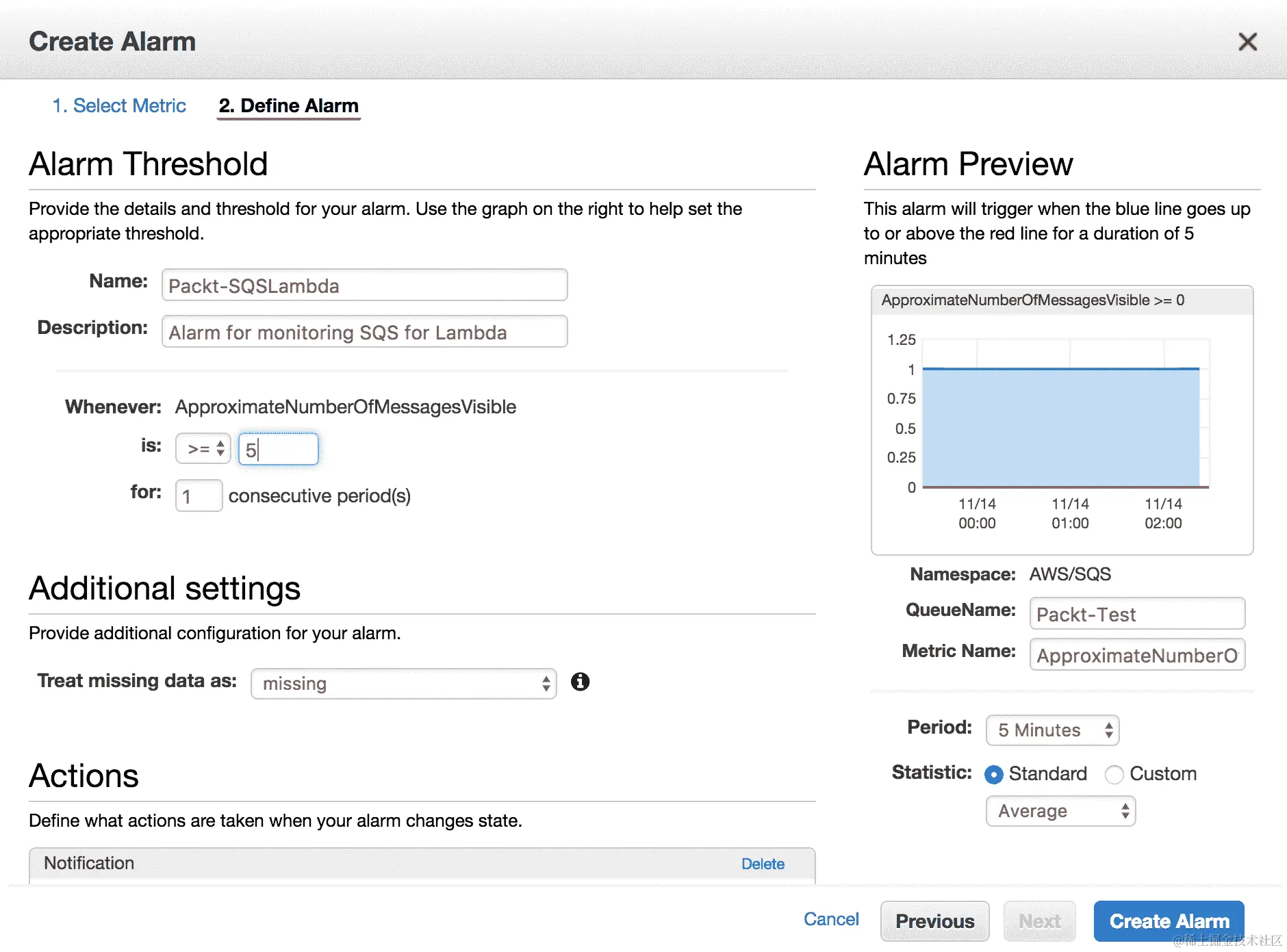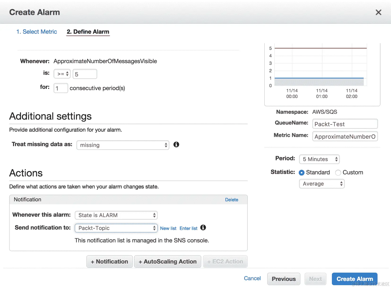 可以设置警报到监控系统,为这些警报配置阈值。例如,每当我们的队列中的消息数量达到或超过 100 时,就需要触发警报。
