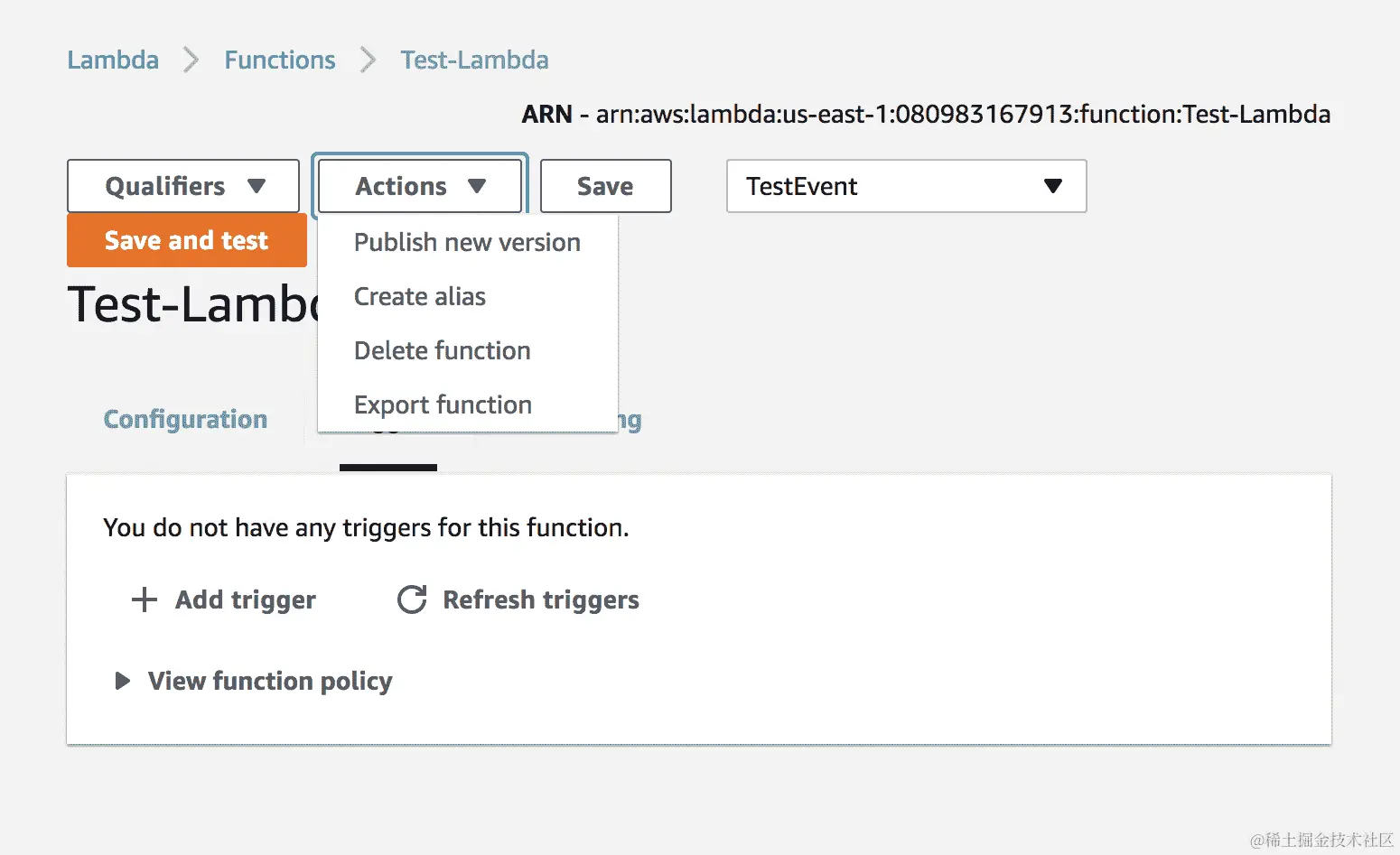 - 设置 Lambda 函数的网络设置后,单击 Lambda 控制台右上角的橙色“保存”按钮,将这些设置保存到 Lambda 函数中。