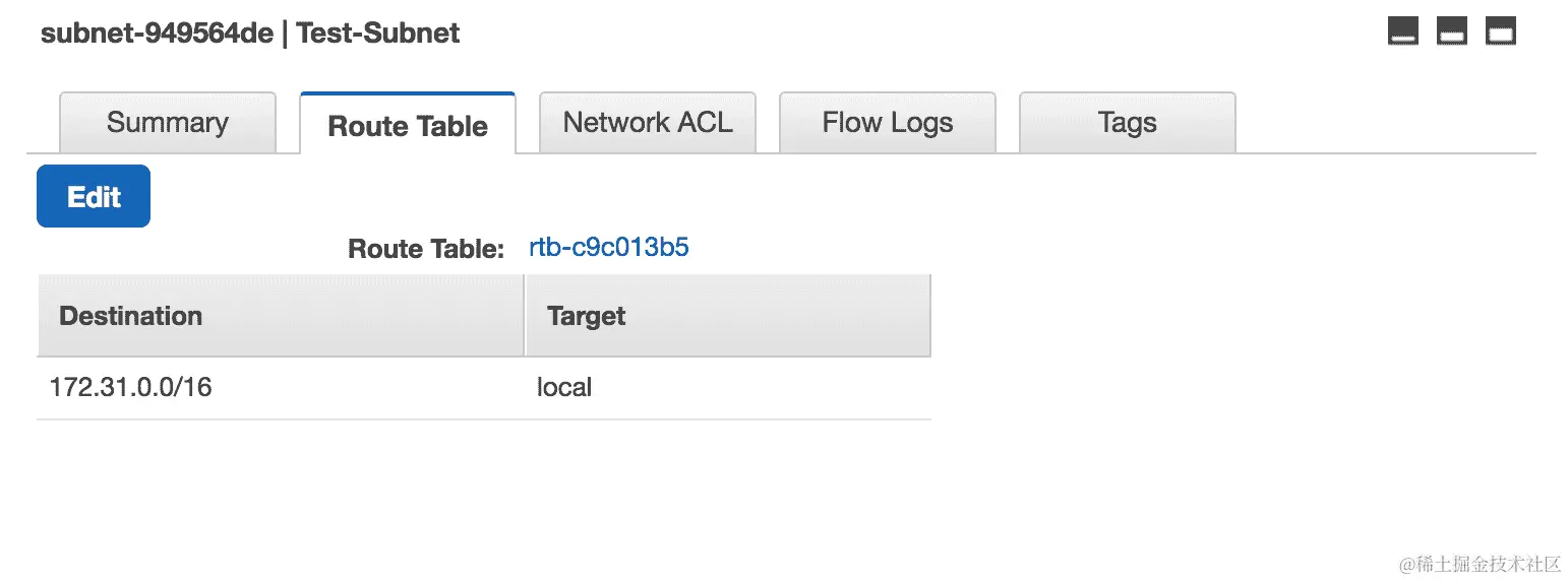 - 单击“路由表”选项卡将显示子网的路由设置,基本上告诉我们允许进入子网的是什么类型的流量: