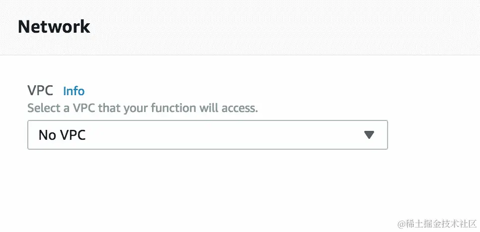 - 现在,让我们从 AWS Lambda 的角度了解 VPCs。就像任何其他 AWS 资源一样,Lambda 函数也可以托管在 VPC 内。您可以在 AWS Lambda 函数的“网络”部分中看到该设置。它看起来像这样: