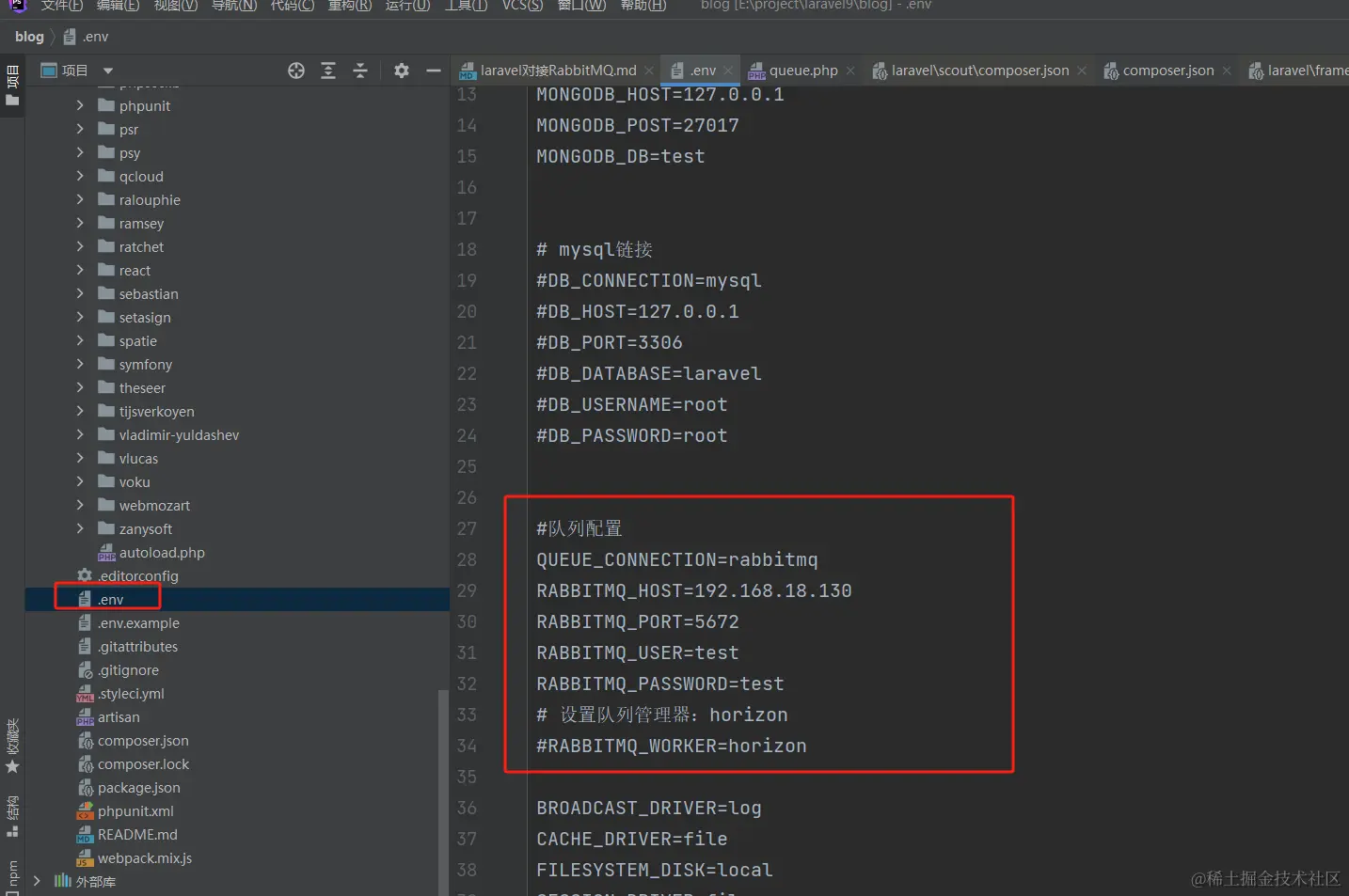 查看对应 laravel的版本,和 laravel-queue-rabbitmq 是否对应