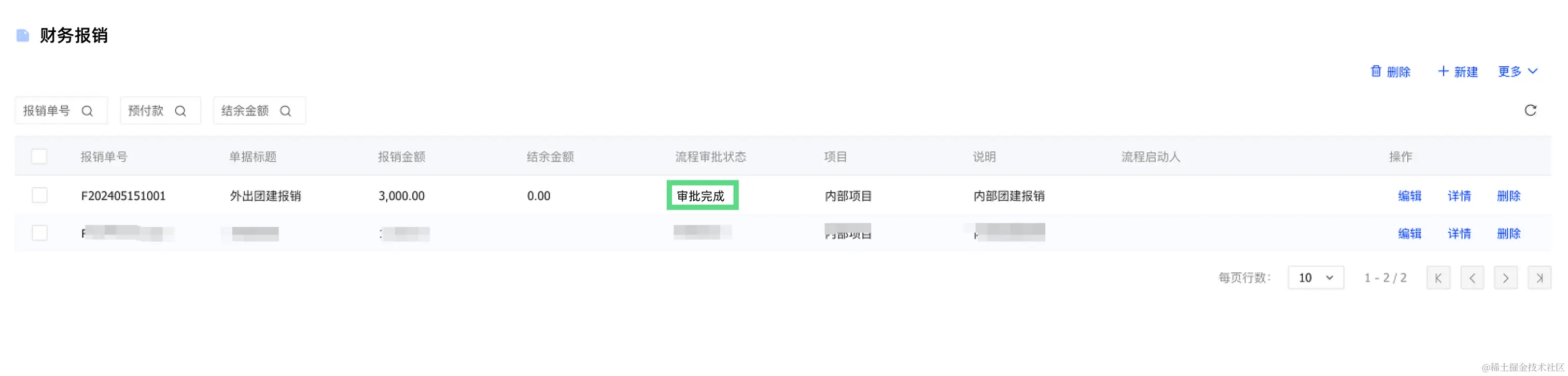 3. 财务报销单审批完成,财务报销单列表页审核状态实时更新。