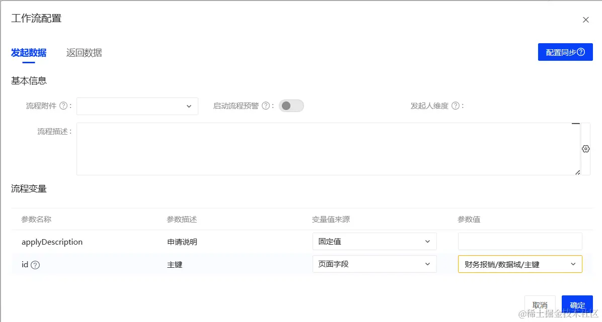 “发起工作流“事件流自动创建且绑定工作流,工作流配置参数已自动映射。