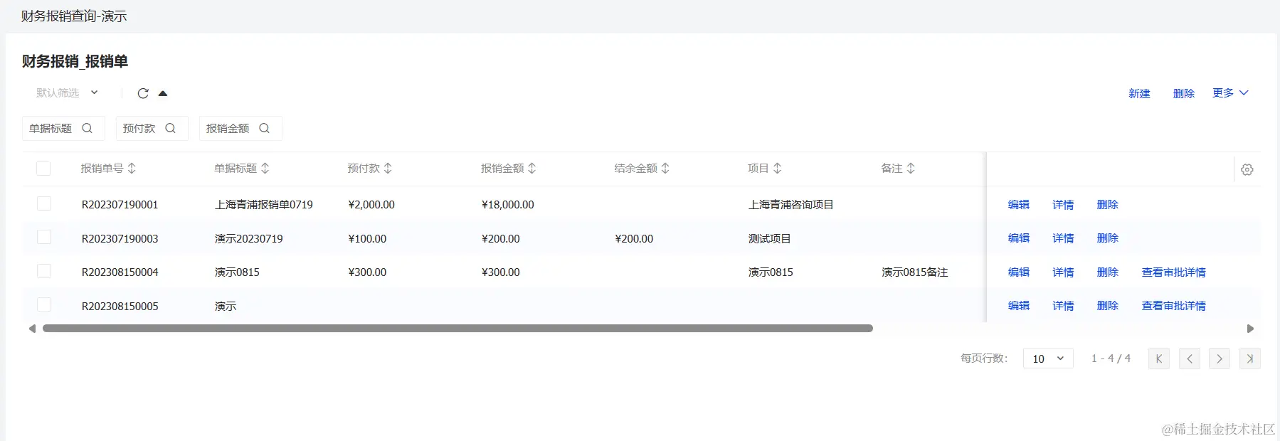 飞搭财务报销单汇总列表页、新建财务报销单页面已创建完成。