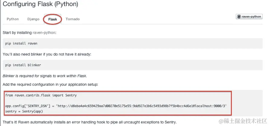 $ pip install raven[flask]