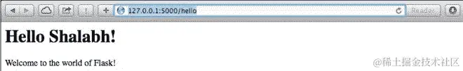 现在如果在浏览器中输入 http:/127.0.0.1:5000/,将会看见应用在运行。