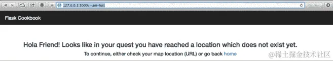 如果输入了一个错误的 URL,比如http://127.0.0.1:5000/i-am-lost,我们将看到下面的样子: