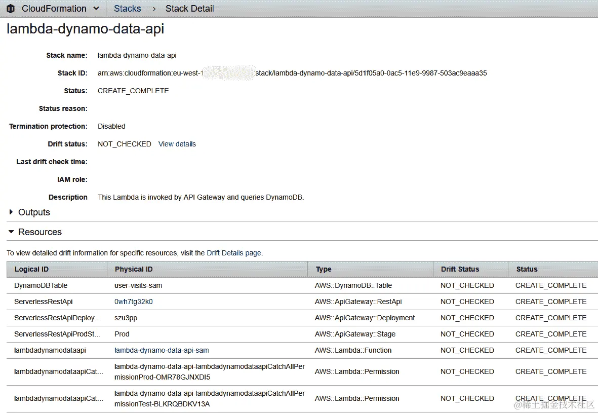 运行./build-package-deploy-lambda-dynamo-data-api.sh来部署带有 DynamoDB 表更改的无服务器堆栈。