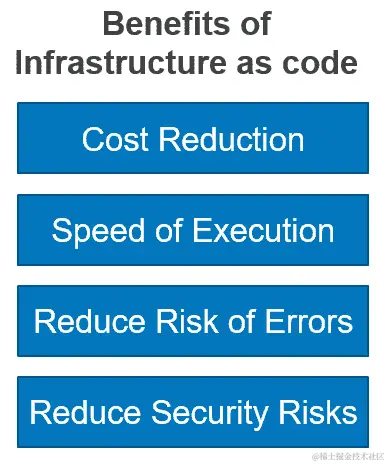 使用基础设施即代码有许多好处。第一个是成本降低,因为您在简单和重复的任务上花费的精力要少得多。在扩展或部署类似基础设施时,您还可以降低成本。