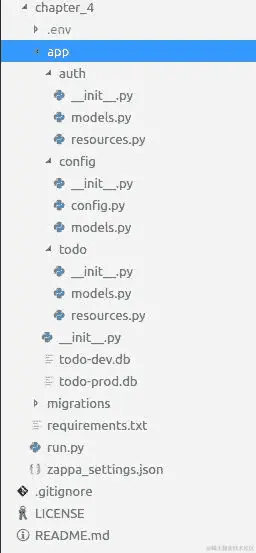 除了扩展集成,我们将创建auth和todoapps作为 Flask 蓝图对象,并使用register_blueprint方法将它们注册到 Flask 应用程序对象中。