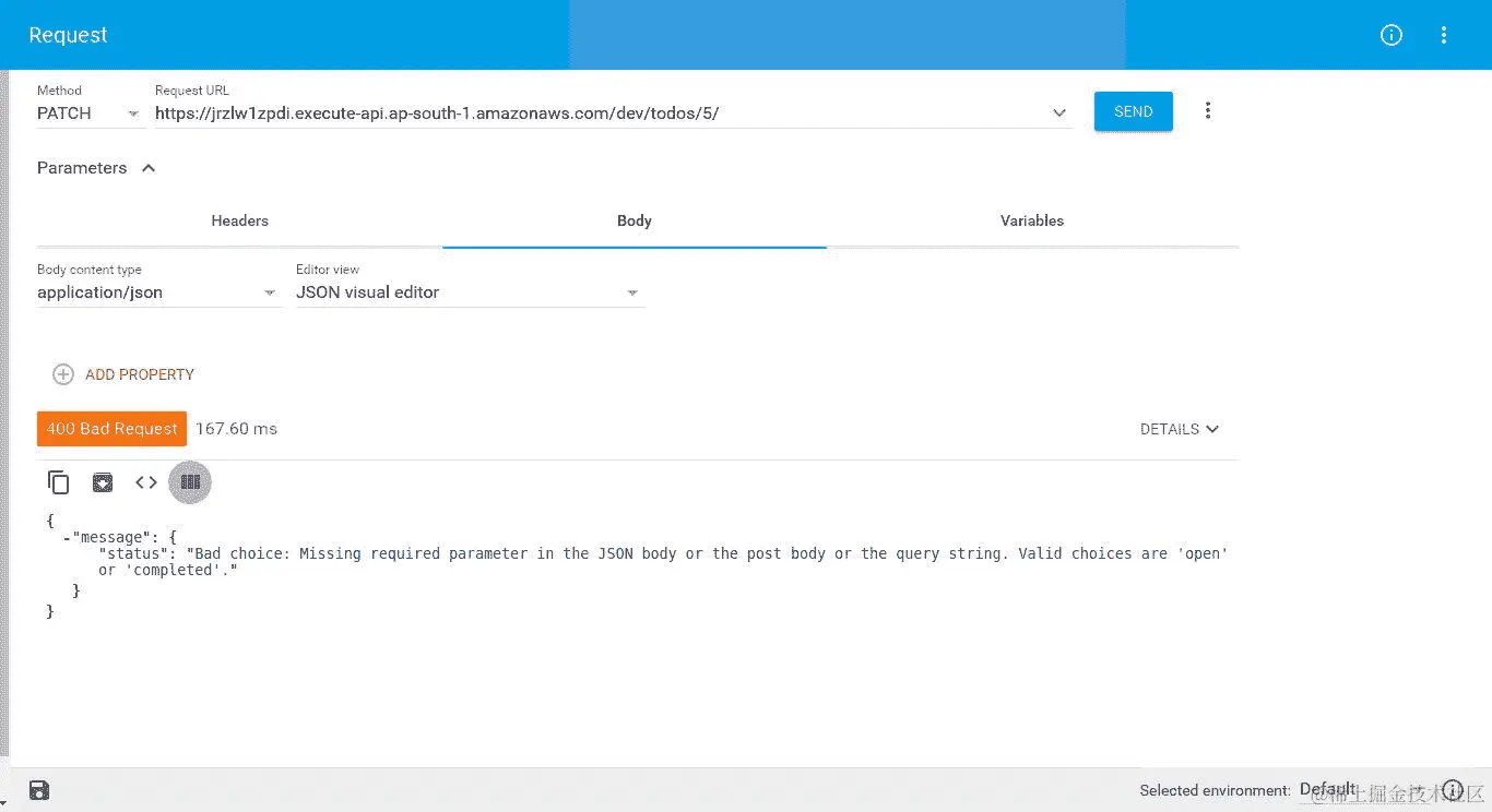我们的应用程序作为无服务器应用程序正在运行。您可以使用它而不必过多担心服务器,因为它能够每秒提供数百万次请求,并且亚马逊将负责其可伸缩性和可用性。让我们尝试另一个 API。