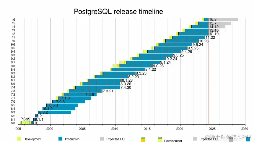 1995年:Postgres项目经过重大改进,引入了SQL语言,从而成为了PostgreSQL。