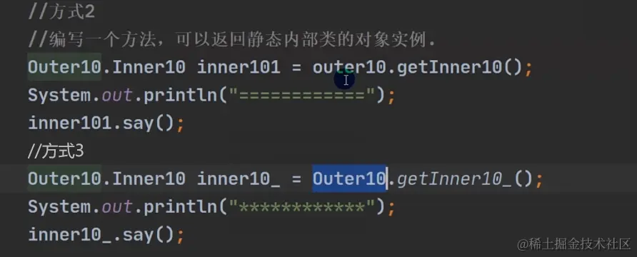 //6.外部类在方法中,可以创建Inner02对象,然后调用方法即可