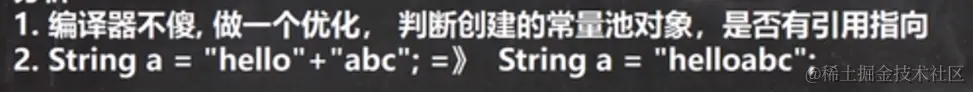 重要规则,Stringc1 = "ab" + "cd";常量相加,看的是池。Stringc1 = a + b;变量相加,是在堆中
