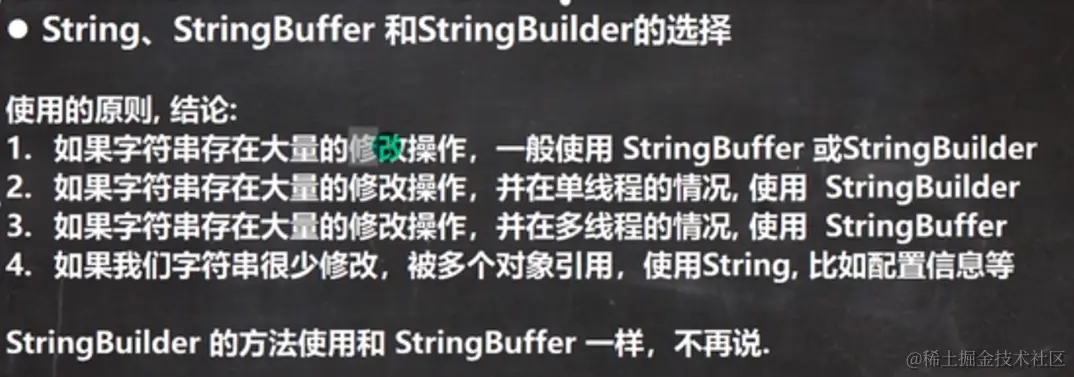 StringBuilder和StringBuffer均代表可变的字符序列,方法是一样的,所 以使用和StringBuffer一样