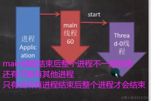 //说明:当main线程启动一个子线程Thread-0, 主线程不会阻塞,会继续执行
