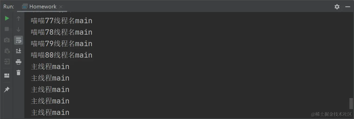 System.out.println("喵喵" + (++times) + "线程名" + Thread.currentThread().getName());