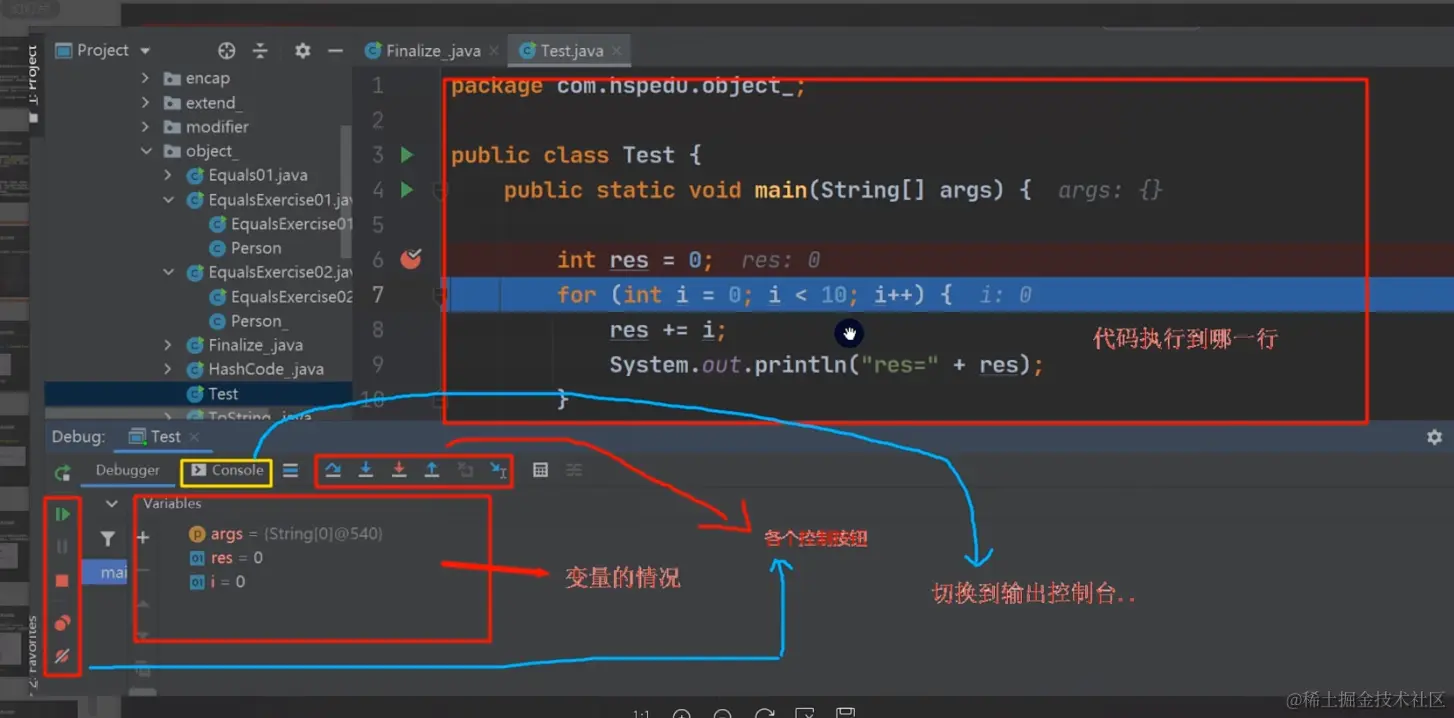 1.断点调试是指在程序的某一行设置一个断点,调试时,程序运行到这一 行就会停住,然后可以一步一步往下调试,调试过程中可以看各个变量当前的值,出错的话,调试到出错的代码行即显示错误,停下。进行分析从而找到这个Bug 2.断点调试是程序员必须掌握的技能。 3.断点调试也能帮助我们查看java底层源代码的执行过程,提高Java水平。