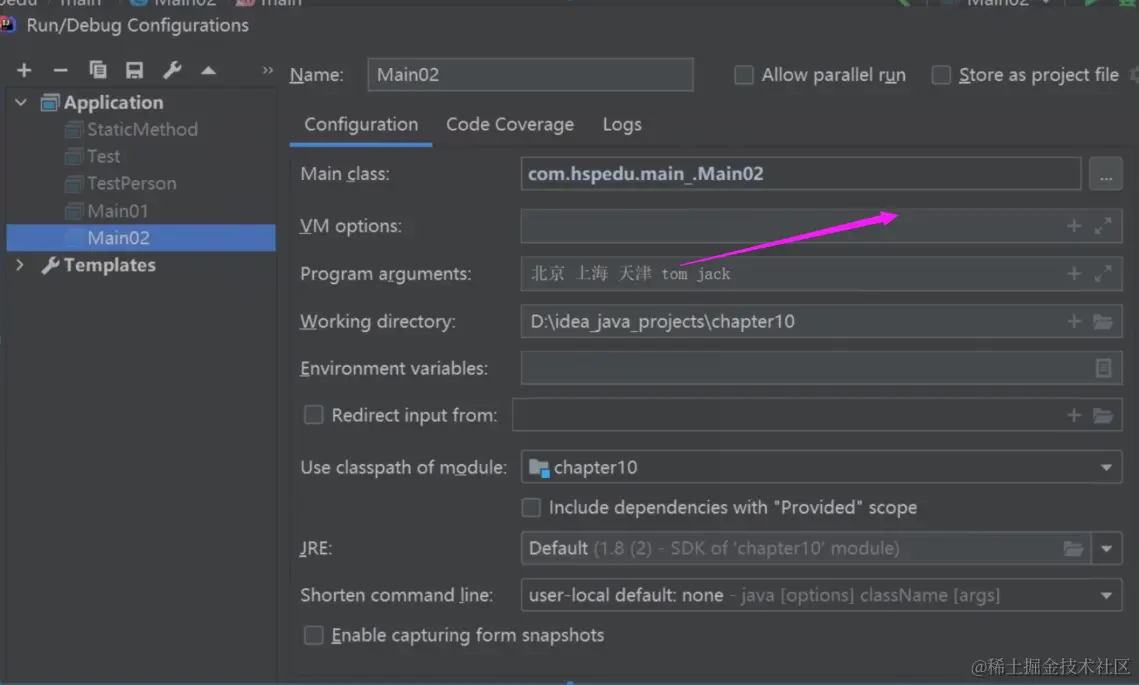 在idea如何传递参数如图: