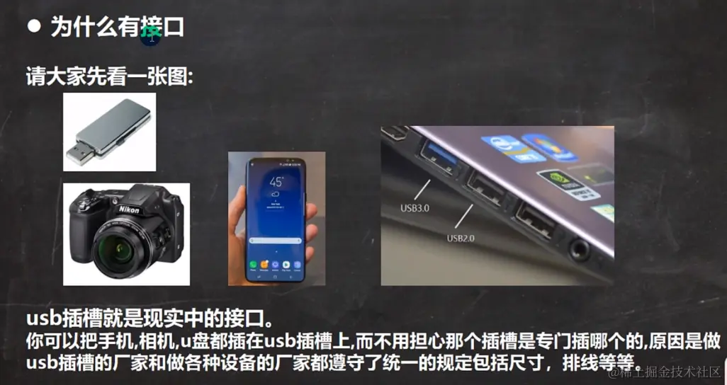 //2.看到接收实现了Usbinterface接口的类的对象实例