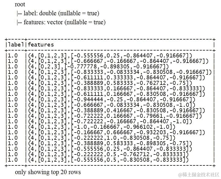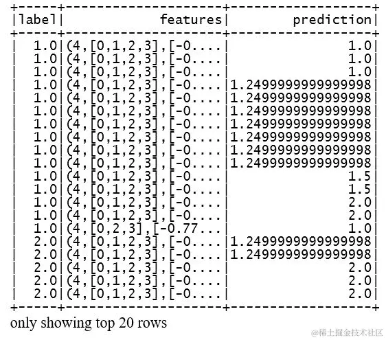 我们首先定义了一个Seq数据结构来容纳一系列向量,每个向量都是一个标签和一个特征向量。然后我们将数据结构转换为 DataFrame,并通过Estimator.fit()运行它以产生适合数据的模型。我们检查了模型的参数和 DataFrame 模式,以了解产生的模型。然后我们继续组合.select()和.predict()来分解 DataFrame,然后循环显示预测和结果。