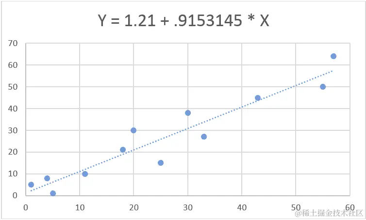 - 这是一个重要的步骤,演示了如何迭代、访问和计算每个成员。为了计算回归线,我们需要计算和、乘积和平均值(即sum(x)、sum(y)和sum (x * y))。