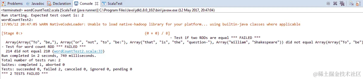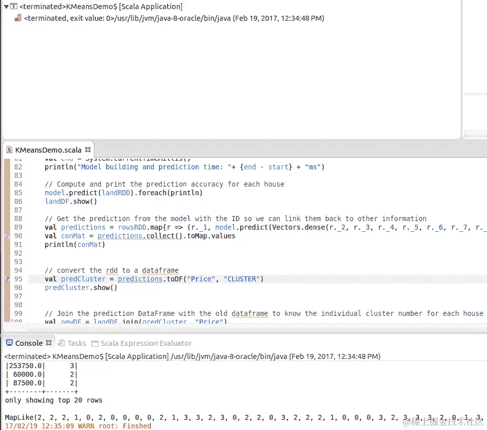- 让我们打印出结果,以确认我们的方法调用通过调用 show 方法将序列转换为 Spark 数据集。