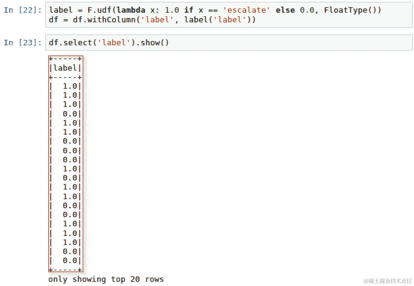 label = F.udf(lambda x: 1.0 if x == 'escalate' else 0.0, FloatType())