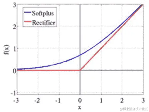 在前面的图表中,softplus (x) = log ( 1 + e^x)是整流器的平滑近似。