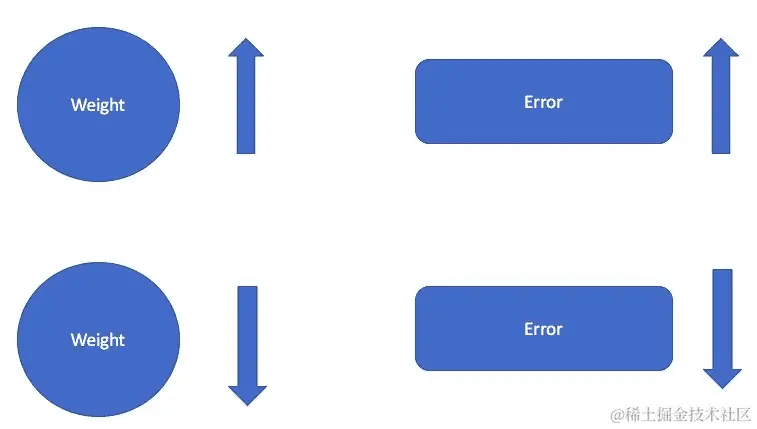 网络还记得,增加权重和偏差会增加误差,或者减少权重和偏差会减少误差。