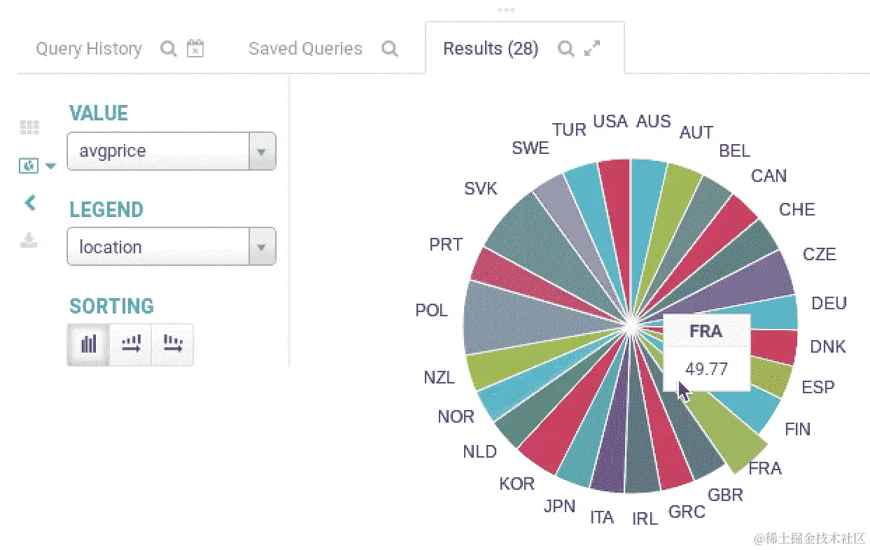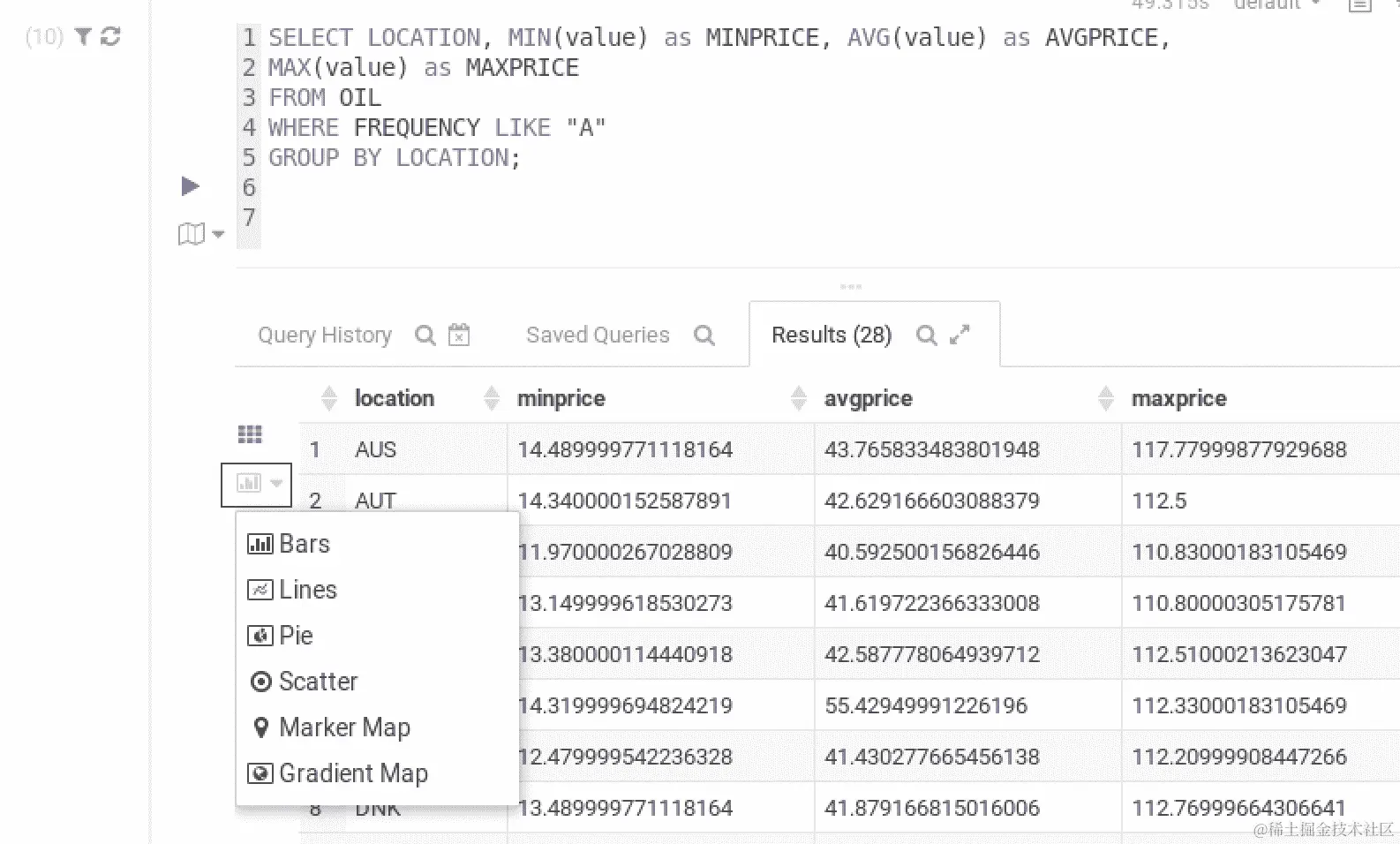 这表明了底层 kdb+数据库处理数据的速度。在这种情况下,它使用给定的选项在 22 毫秒内过滤和聚合了 1100 万条记录。