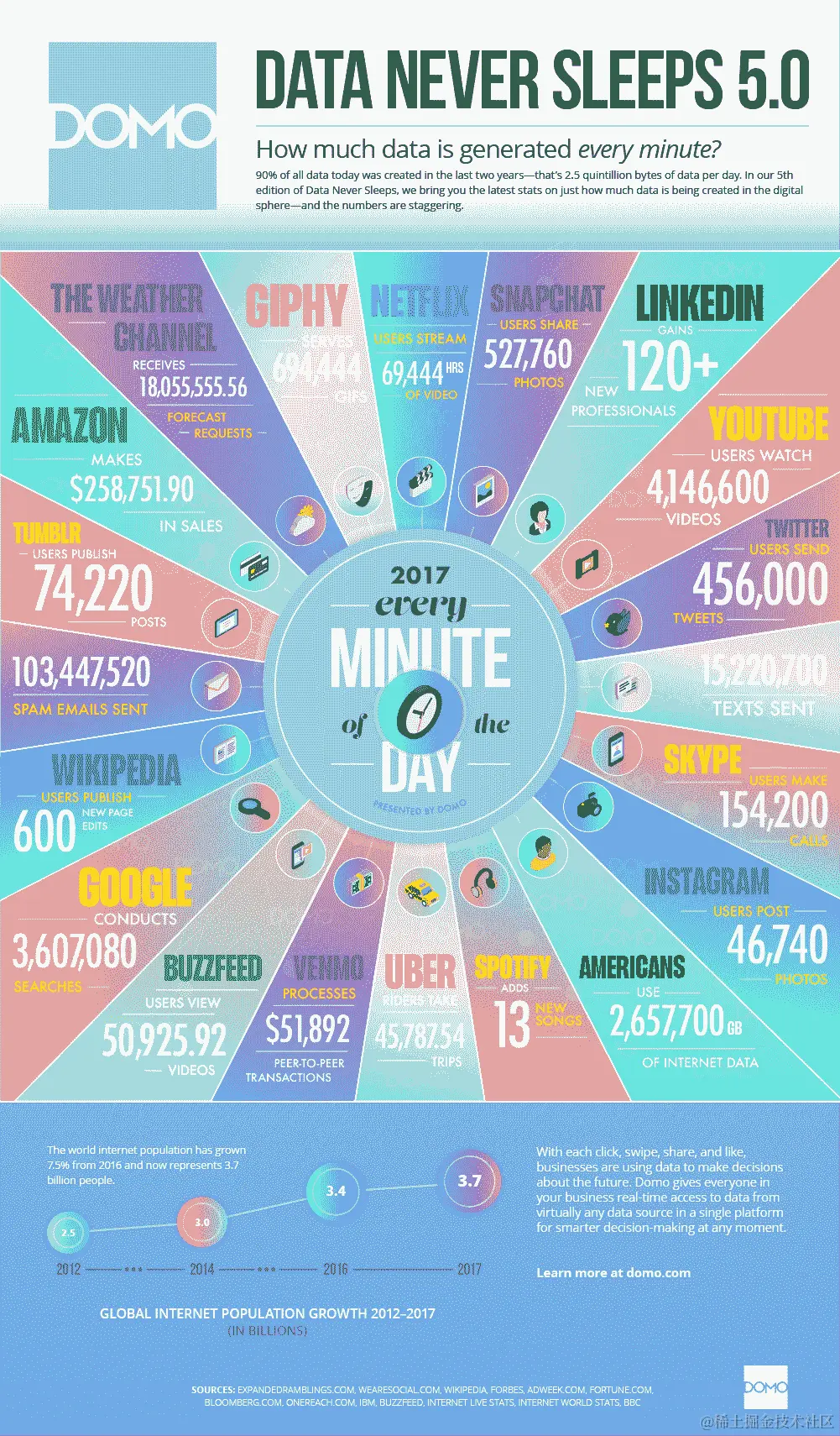 总的来说,这些数据的大部分是由基于网络的来源生成的,例如 Facebook 等社交网络和 YouTube 等视频分享网站。在大数据术语中,这也被称为非结构化数据;也就是说,不是固定格式的数据,例如电子表格中的数据,也不是可以轻松存储在传统数据库系统中的数据。