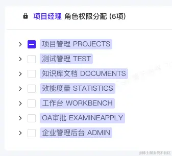 选择 角色 后,点击【管理角色】,在【角色权限分配】组件,可以对该角色的菜单权限进行分配和管理。