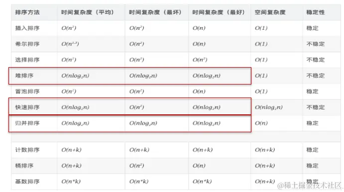 不同排序算法的时间复杂度