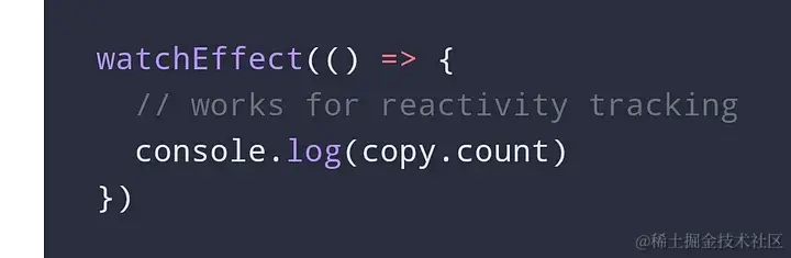 Vue会自行判断,如果copy.count发生变化,就应该重新运行代码。