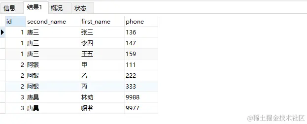 我们先用 SQL 查询,查询结果如下
