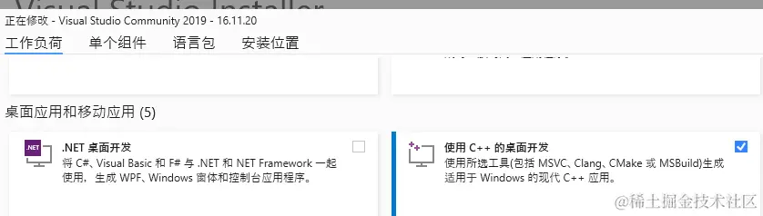 1. 安装AndroidStudio,安装SDK、NDK(编译filament1.28.x,使用的版本25.x,这里需要结合filament的版本来看,不同时期的会编译不过) 2. 安装VS,勾选C++桌面开发
