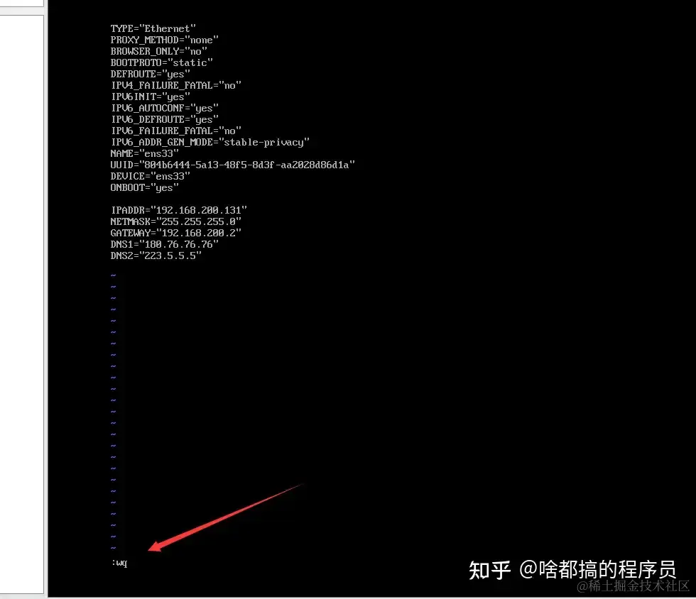 改完之后,先按esc键,然后分别按: 键,w键,q键 这样就保存退出。